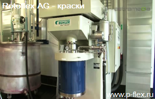 После получасового перемешивания автоматическим «миксером» Fuell и часового «вымачивания» готовой смеси чан транспортируется в цех бисерных мельниц (средний объём годового производства каждой из 6-ти имеющихся — 1200 т красочного концентрата), в одну из которых по специальной магистрали из него транспортируется смесь для диспергирования.