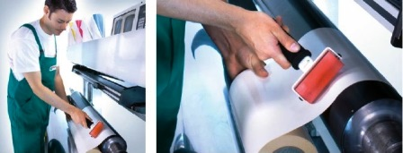 Крепление форм на формном валу - прежде всего монтажная лента или двусторонний скотч крепится к сливу или цилиндру. Для плотного закрепления рекомендуется для разглаживания с помощью резинового валика.